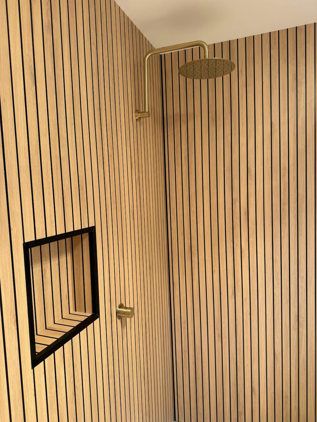 By using our external corner trims, you can create a matching shower niche with the panels.